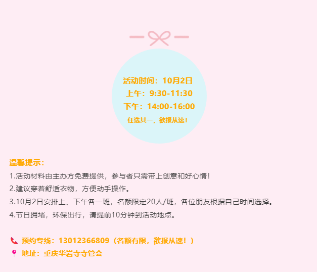 华岩佛教博物馆此次推出公益手工佛果DIY活动,全程免费。提供中秋主题的原始原料与装饰素材,您可以为佛果设计独特的节日造型,如月饼花、团圆纹样等。制作完成后,可将佛果带回家与家人分享,或留在活动现场用于祈福,传递节日的吉祥与美好。