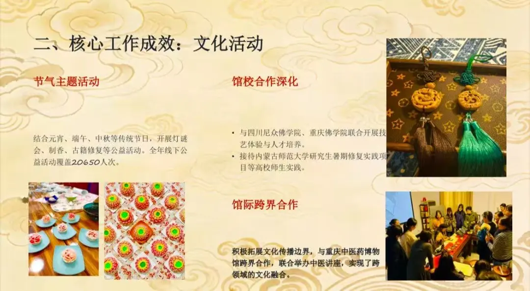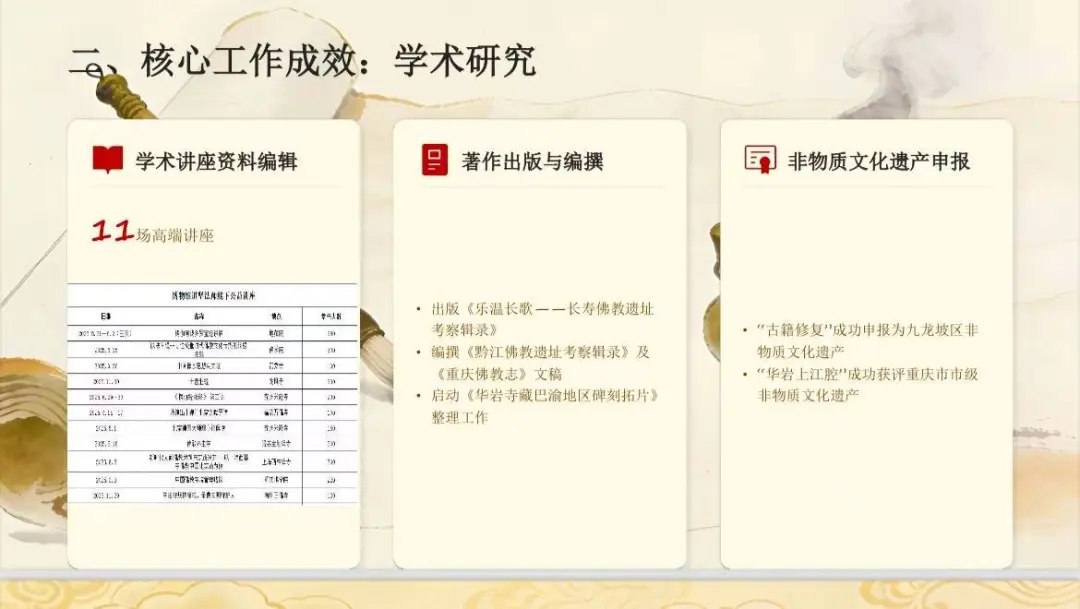 值此岁末年初之际,刘雪琴副馆长在总结大会上代表华岩佛教博物馆全体同仁,向长期支持佛教文化传承与文博事业发展的各界人士致以诚挚感谢!就重庆华岩佛教博物馆2025年度工作总结暨2026年工作规划围绕六大核心领域汇报如下: